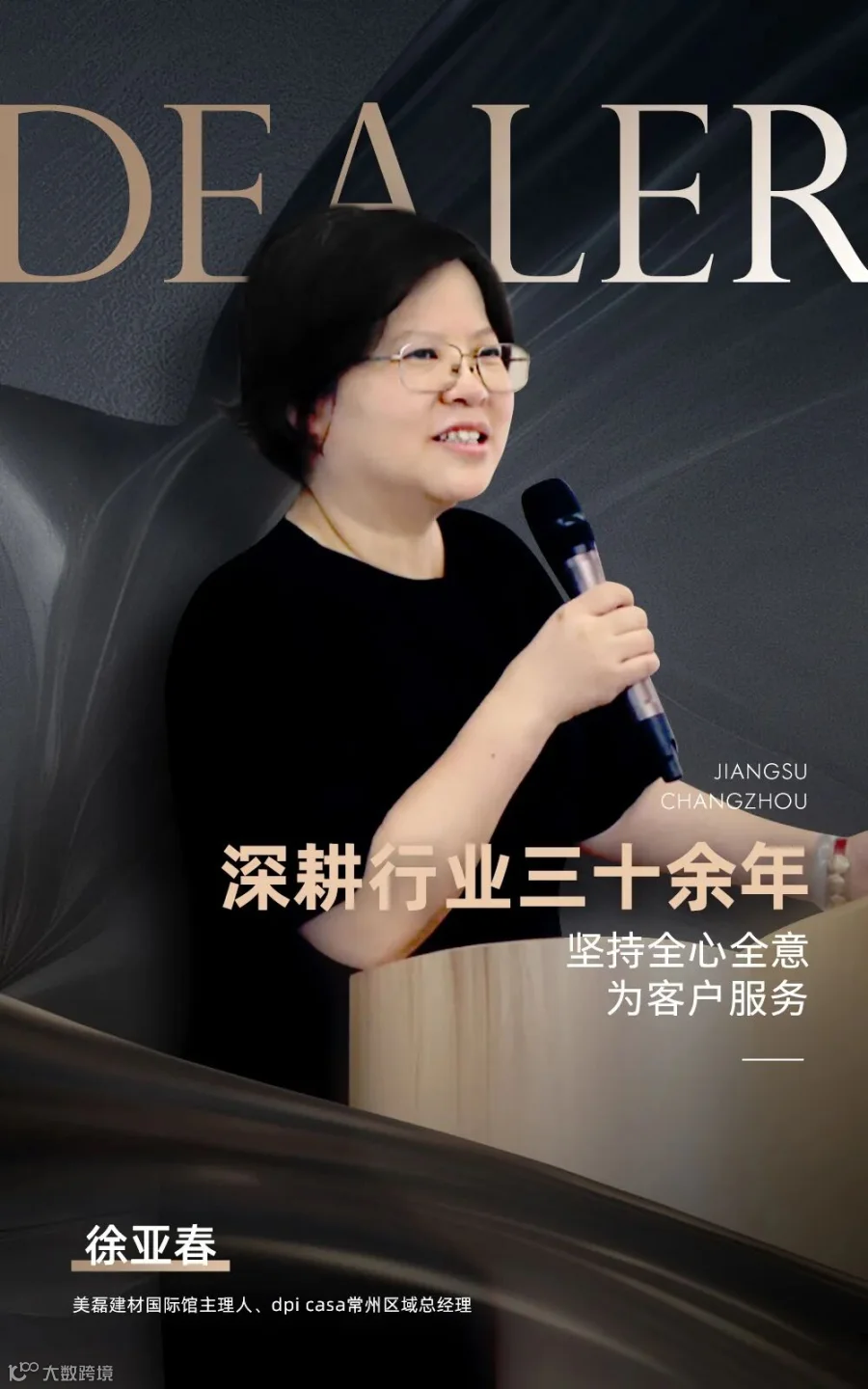 在竞争激烈的建材行业市场中,美磊建材国际馆主理人、dpi casa常州区域总经理徐亚春女士及其团队,始终坚持“以客户为中心”的理念,致力于为客户量身打造美学空间定制方案,凭借高效、贴心的服务,赢得了当地客户的广泛信赖和高度赞誉。本期经销商专访,我们特别邀请了徐总来分享她对高端品牌运营和客户维护方面的经验和心得。