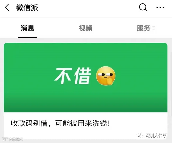 据“微信派”提醒,出租的收款码一旦落入黑产团伙的手中,很可能被用于线上赌博的赃款转移、网络诈骗中的引诱付款、违禁品的交易……