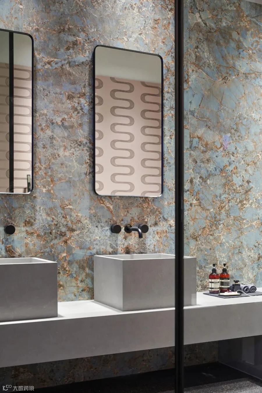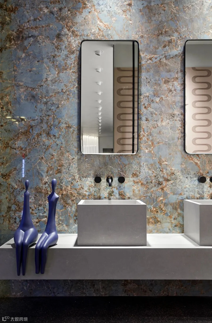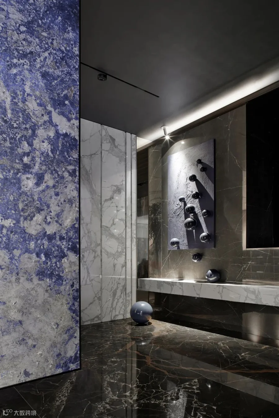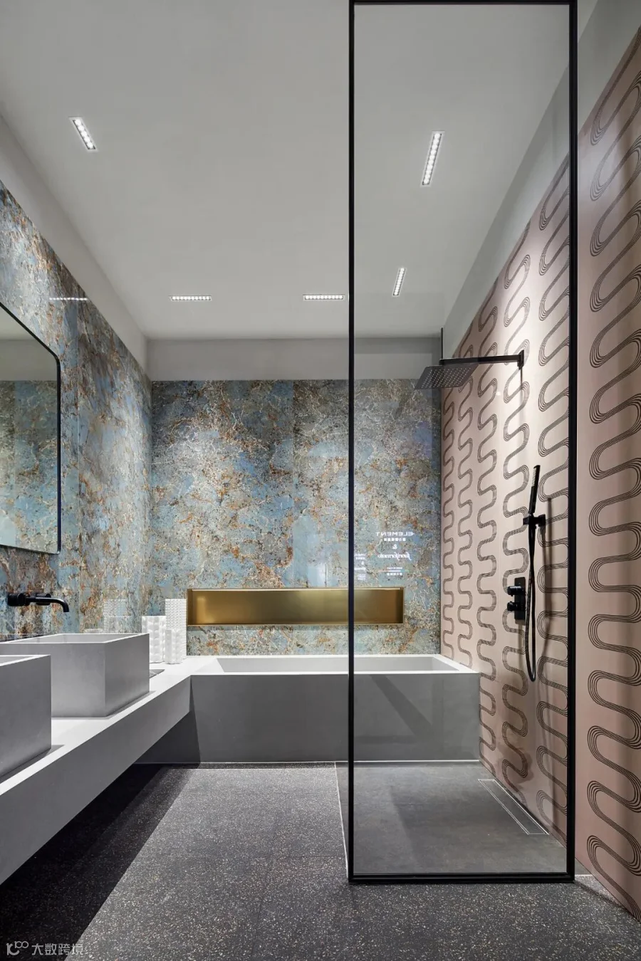 双人洗手台卫生间的设计,结合奢华细腻的瓷砖材质,从形式到材质的连续性恰到好处,极具独特的沐浴体验。