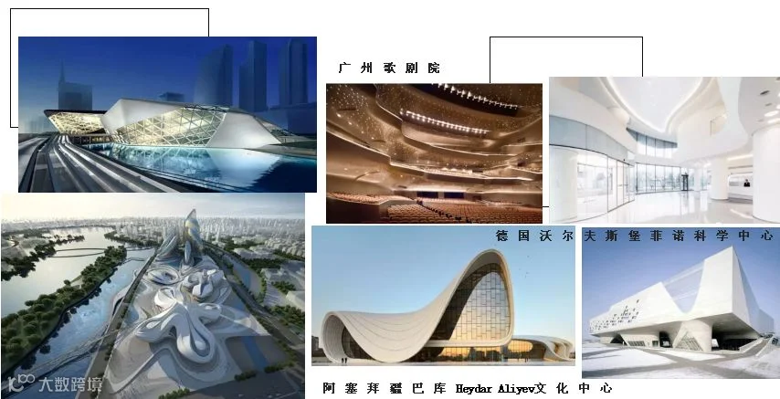 以非常强劲有力,又具有流动结构的建筑设计作品,生活与艺术结合,将建筑既定的概念推向极致。德国沃尔夫斯堡菲诺科学中心 罗森塔尔当代艺术中心、阿塞拜疆巴库Heydar Aliyev文化中心、北京银河/北京望京/上海凌空SOHO、广州歌剧院等。