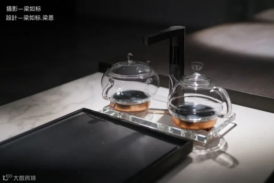 整体空间布局和灯光装置,就如雨水打在水塘中泛起的层层涟漪。每一处细节背后,都隐藏着关于人与空间关系的探索。