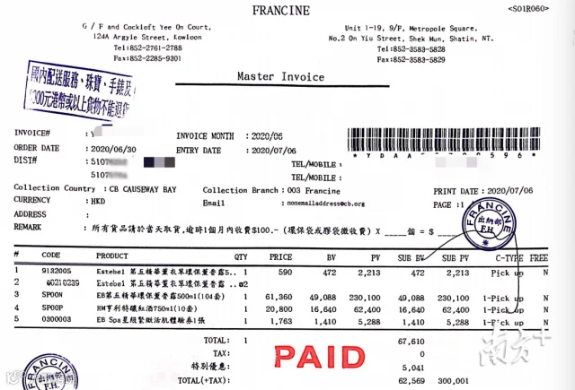 在老同学的指引下,短短几个月,朱可花了30多万元买Francine的商品,跻身“初级区域独立经销商”。他想退货,但发觉自己连商品都没见过,拿回钱的办法是追加投资或拉人入伙。