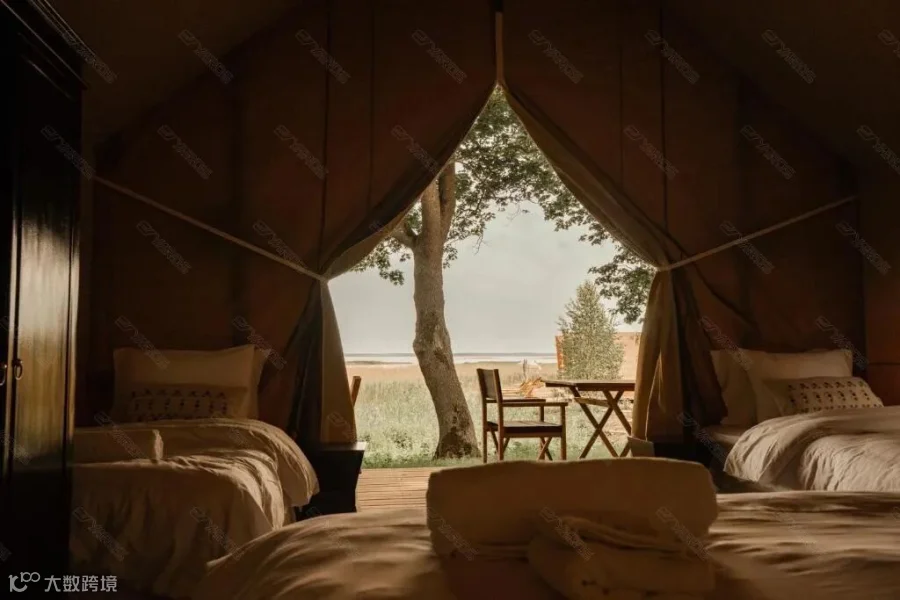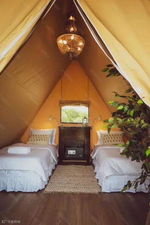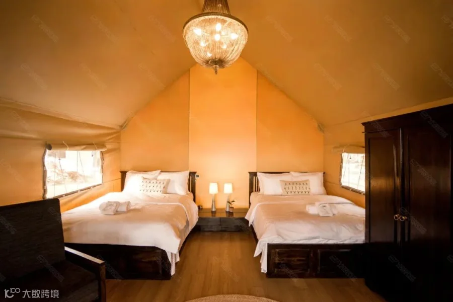 营地由15座轻奢系列帐篷组成,涵盖大床房、双人标间、三床家庭房等多种房型。