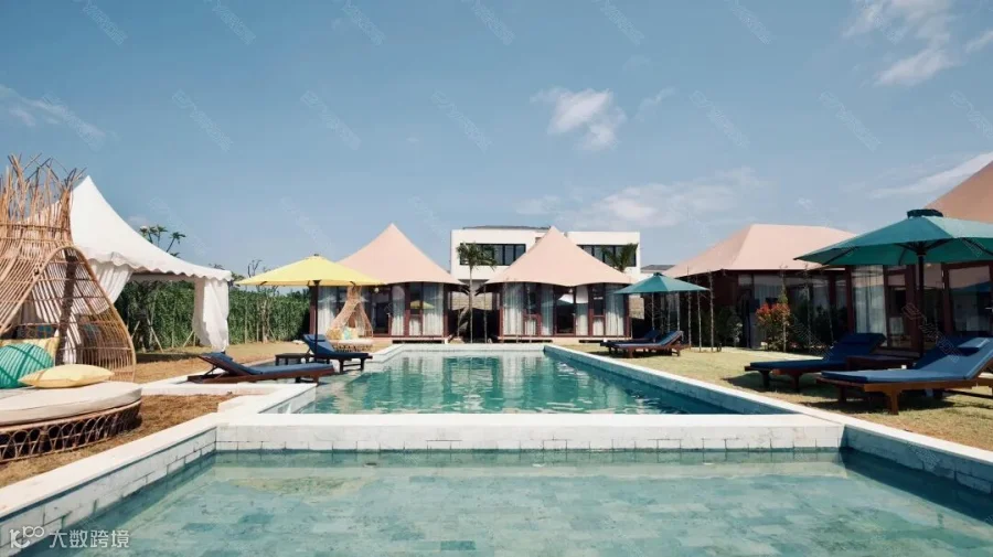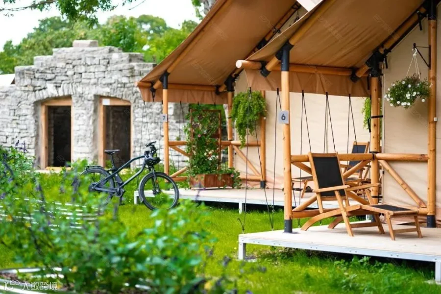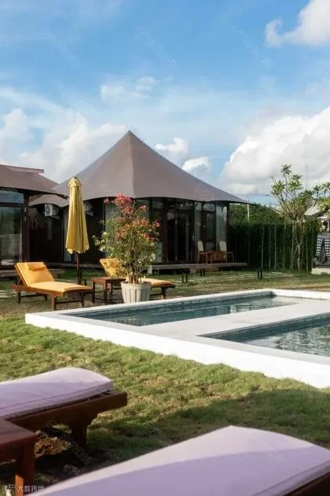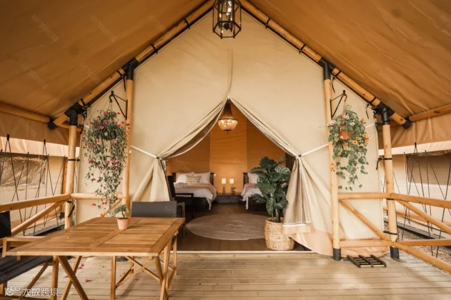 度假村由泳池景双人房、花园景双人房、泳池景行政套房、泳池景双卧套房4种酒店帐篷组成。