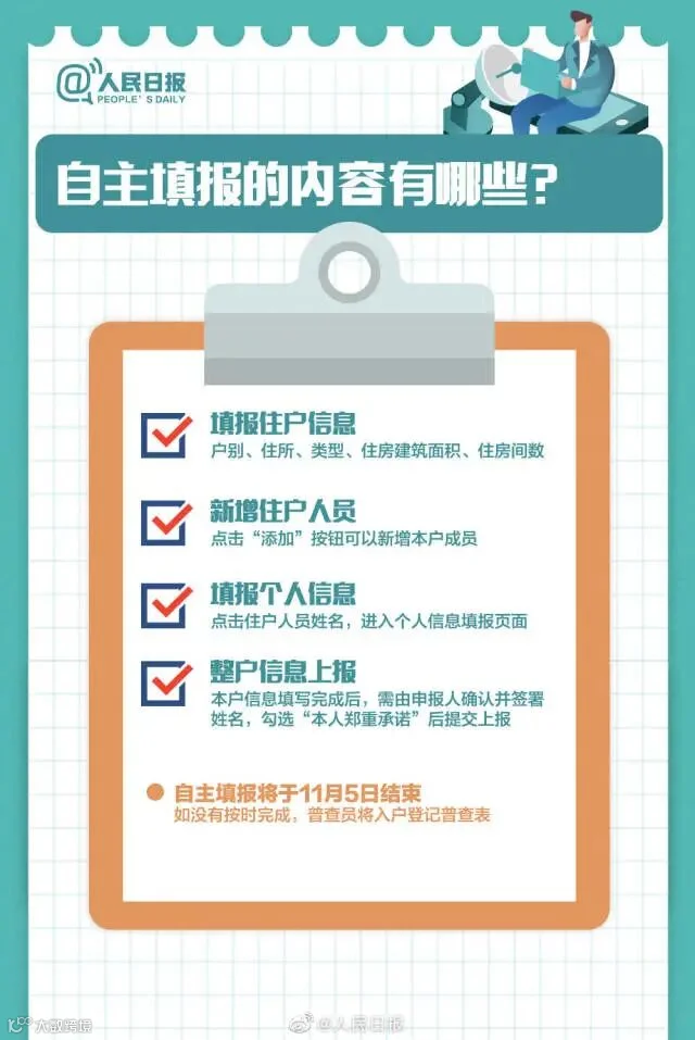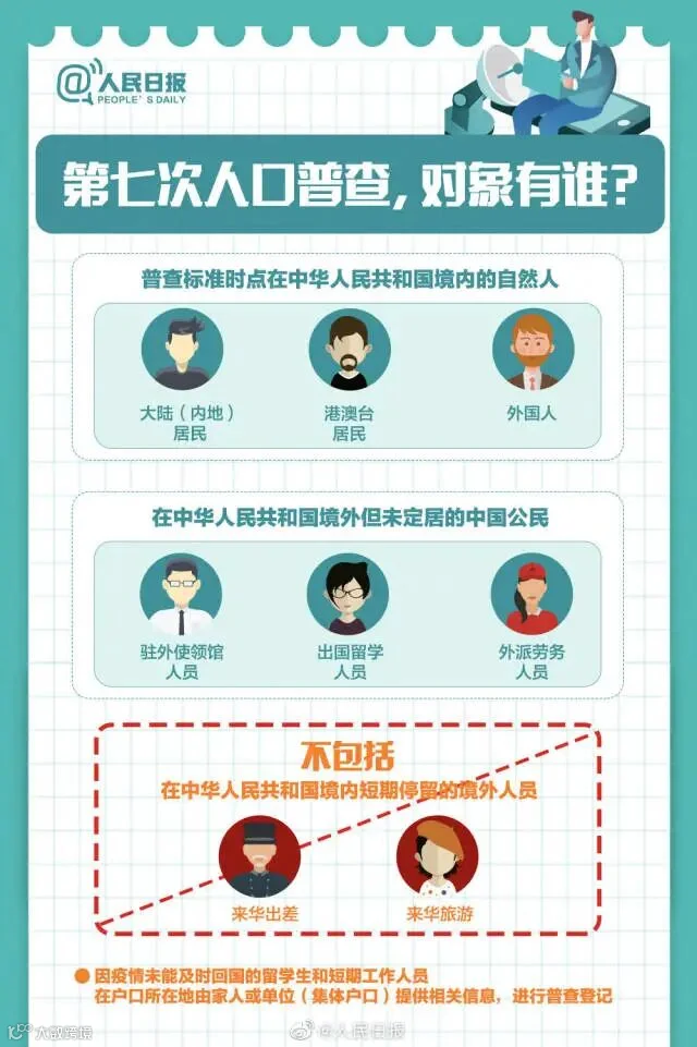 本次人口普查将采取电子化方式开展普查登记,同时倡导普查对象自主填报个人和家庭信息。哪些人是人口普查对象?如何进行自主填报?戳图了解第七次全国人口普查↓↓