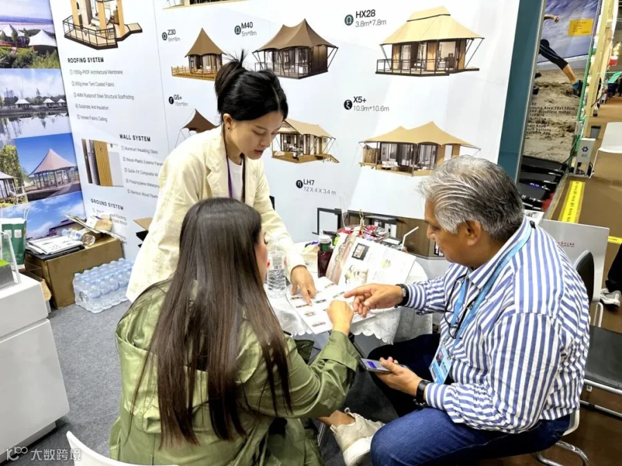 帐篷还能这么设计!” 一位中东采购商指着沙盘上的酒店帐篷连连拍照,“卧室、客厅、卫浴一应俱全,简直把房子搬进了自然里”。