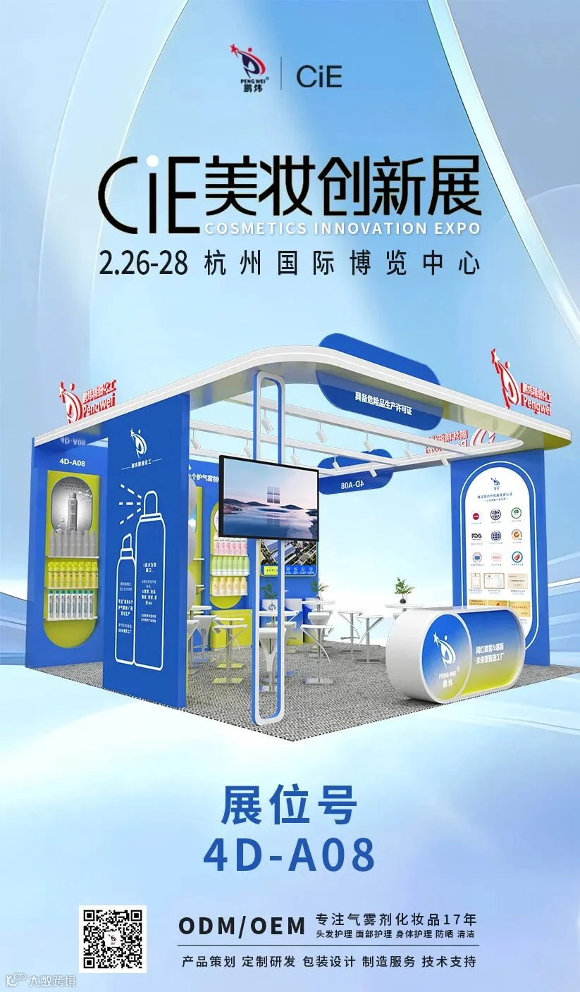 美妆界的盛会来啦!2025 年 2 月 26 -28 日,杭州 CiE 美妆创新展蓄势待发。我们广东鹏炜精细化工有限公司精心筹备,带着满满的诚意与创新产品奔赴这场约会。诚邀您亲临现场,感受我们的魅力,期待与您在展会相逢,共话美妆新未来!