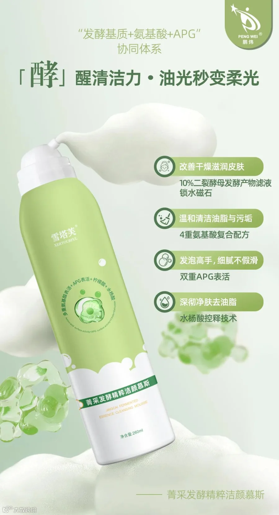 ► 菁采发酵精粹洁颜慕斯:“发酵基质+氨基酸+APG”协同体系。