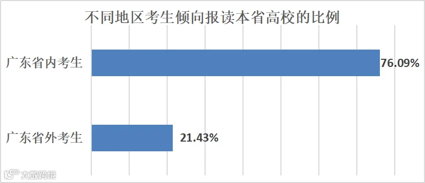 有趣的是,调查还发现受访广东考生留在省内的倾向远高于其他地区考生。高达76.09%的受访广东考生打算报读省内高校,而受访的广东省外考生只有21.43%有意留在本省。“宁读本地二本,不去外地一本”的观念在广东考生当中似乎仍然根深蒂固。