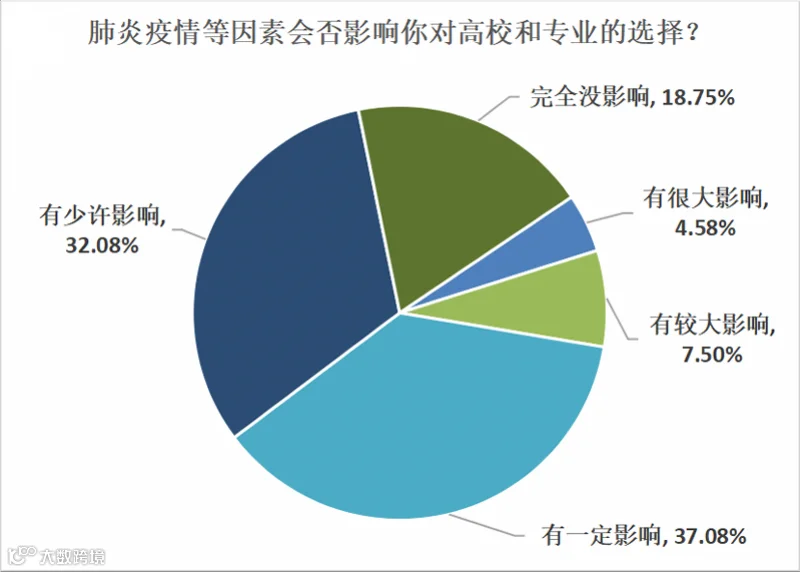 在新冠肺炎疫情下,今年不少行业出现巨大变化,大家的生活方式也或多或少有所改变。这些变化会否对考生选择高校和专业产生影响呢?调查中,接近五成受访考生承认疫情等因素改变了自己的志愿填报计划;32.08%认为只有少许影响,也有18.75%表示完全没有影响。