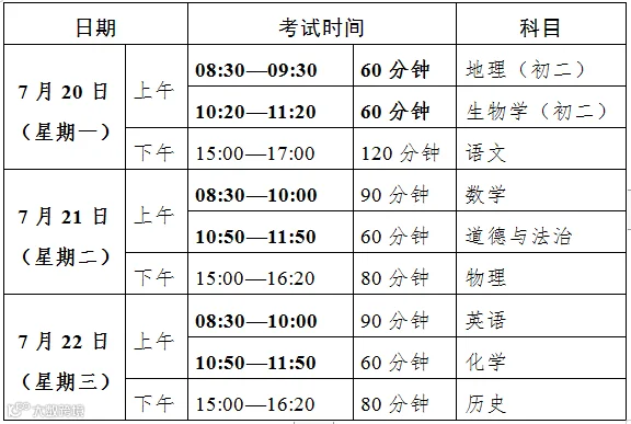 广东省2020年初中学业水平考试(省统一印制试卷的地市)将于7月20-22日举行。
