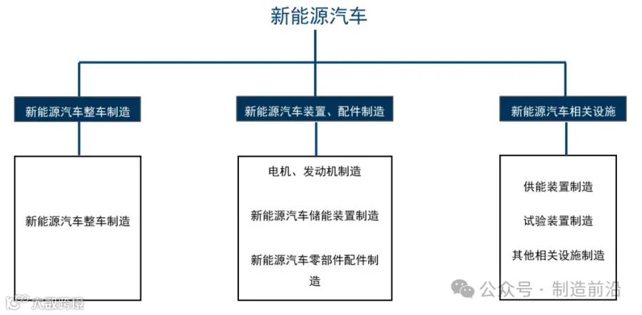 中游:整车制造,包括纯电动汽车、油电混合动力汽车、燃料电池汽车、增程式电动汽车等;