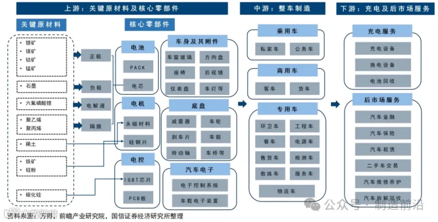 下游:汽车服务,包括充换电服务、汽车后市场等。