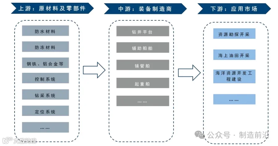 下游:涵盖海洋油气资源勘探开采、海上油田开采、海洋资源开发工程建设等应用市场。
