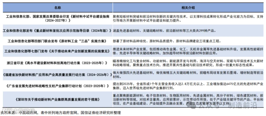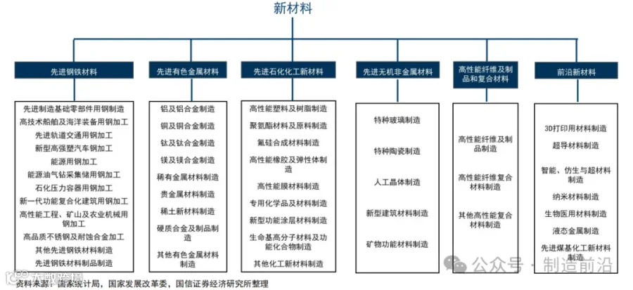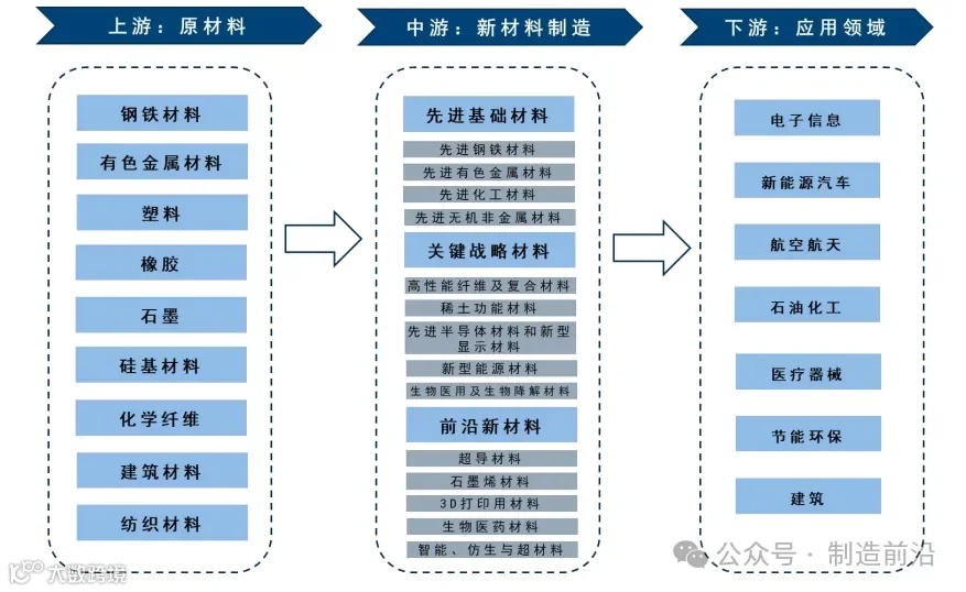 中游:主要分为先进基础材料、关键战略材料和前沿新材料;