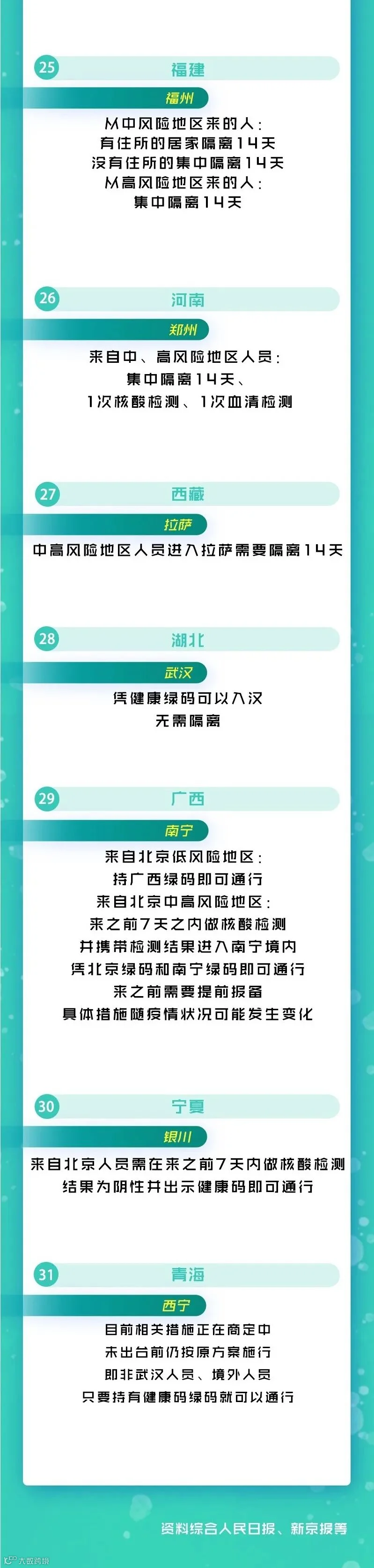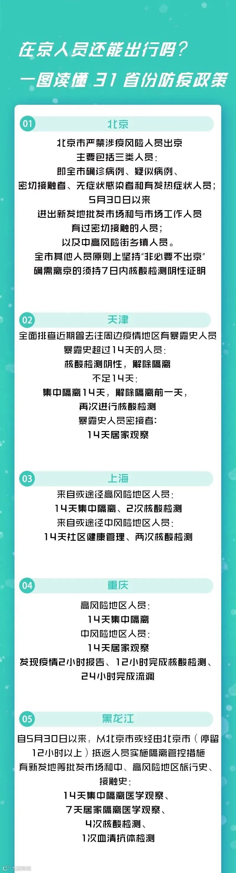 北京严管人员流动的同时,近期,各地亦针对在京人员流入出台相应防疫政策。受外界关注的是,到底哪些人员还能自由出京?出行后抵达外地又将遵循什么防疫要求?近日,记者盘点了31省份最新防疫政策,这可能是一份最全的出行指南。