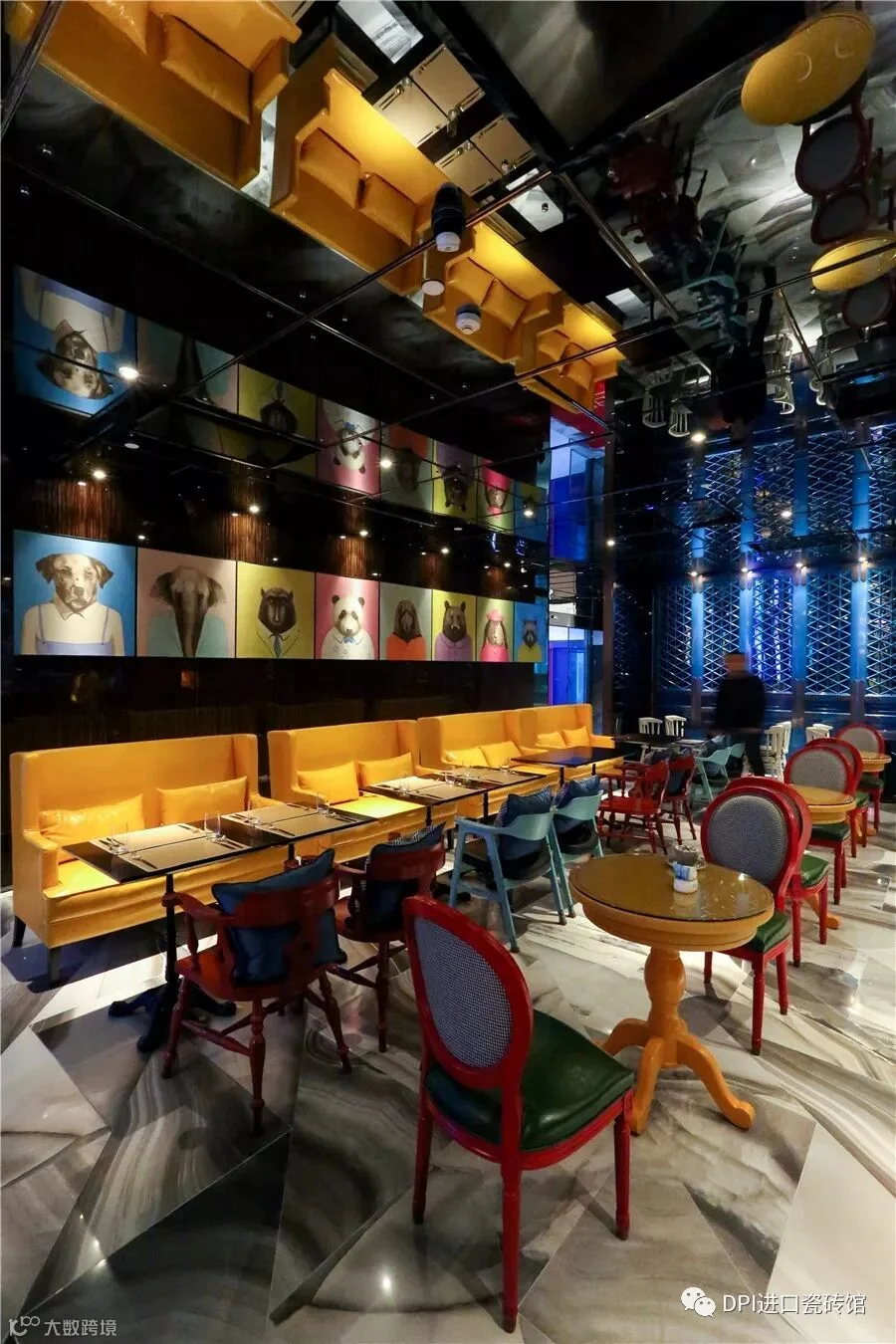 接待大堂不再是传统意义上的大堂,同时也是餐厅、酒吧、活动演绎的场所。设计师借用了北京皇宫特有的门窗造型,提炼传统符号合并用现代的语言传达、表现出来,结合地面巧妙设计切割铺装的意大利REX汉妮玉瓷砖,营造出极具时尚感的酒店大堂。