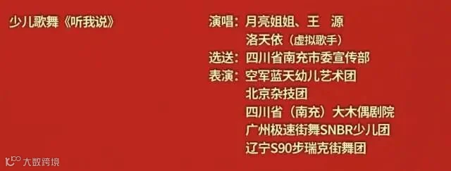 在少儿歌舞《听我说》中,月亮姐姐、王源与虚拟歌手洛天依一起,为小朋友们带来充满梦幻色彩、童真童趣的歌舞表演。节目中酷炫的街舞表演,高难度的舞蹈动作,在彩排中引来观众的阵阵喝彩,参与表演的就有来自广州急速街舞SNBR少儿团的小朋友们。