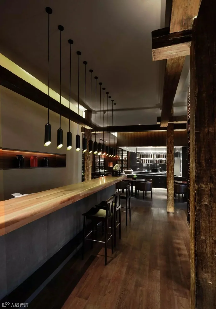 空间中随处可见的中式柜台、鸟笼、水缸、算盘、灯笼等极具代表性的新中式元素,将深沉、内敛的中国传统文化精髓表现的淋淋尽致。“粤色”中餐厅设计得巧妙独到,天花使用木梁结构处理,极具岭南建筑特色。精心栽种的美人蕉与窗外水景结合,颇有“雨打芭蕉”的诗意。空间中一幅幅熟悉的场景,唤起每一位宾客内心对于“家”的眷恋。
