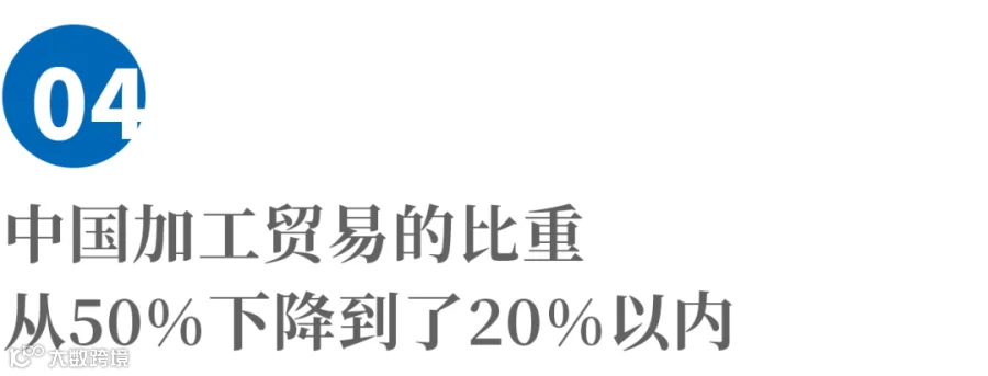 在2010年前,中国制成品中50%是加工贸易,30%多是一般贸易。一般贸易就是相当于,国内自己的产业链做出来,然后出口;还有10%左右是农产品、原材料、初级产品,这些不需要制造的商品。现在,中国6万多亿美元进出口的产品中,加工贸易的比重已从50%降至20%以内。一般制造,中国自己的产业链集群制造的东西占到了70%;还剩下10%是农产品或者地下挖出来的原材料。