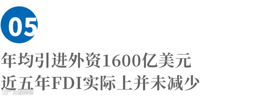 另外,有些人会提到,是不是前五年引进的外资比较高,而最近的五年相对低,因为最近五年不仅经历了贸易战,在遭遇了疫情的冲击。但实际上,最近五年中国引进外资平均每年是1600亿美元,而之前的几年,也就是2010年-2016年期间,平均引进的外资大体上是1300亿美元左右。