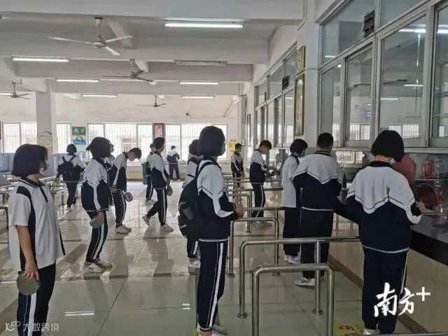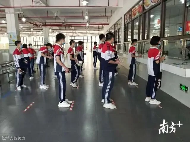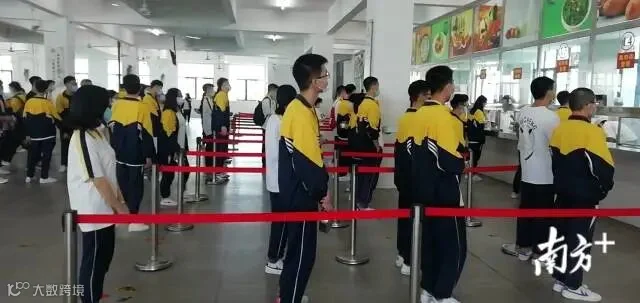 【三水乐平中学】学生排队错峰就餐,餐桌隔板还贴了中考知识点。
