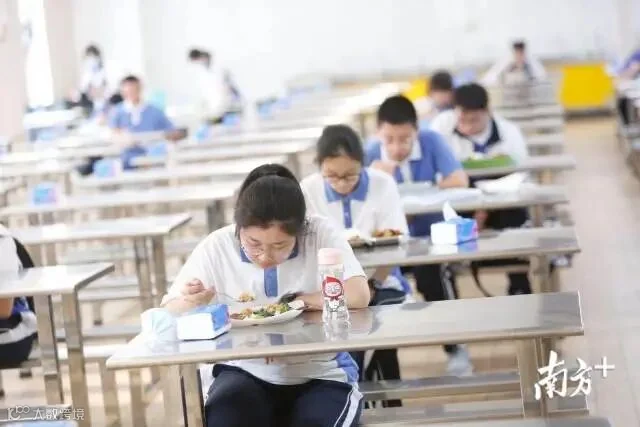 【南外高级中学(集团)高级中学】上午11:40,南外高级中学(集团)高级中学的高三学子分批次进入食堂就餐,一人一桌,学校对餐具无指定要求,但不少学生也自带餐盒就餐。