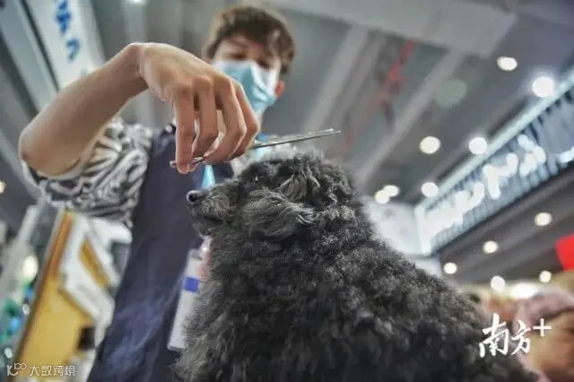 大赛展示交流区内,来自广东的技能人才正在表演宠物美容。南方日报记者 石磊 肖雄 见习记者 许舒智 金镝 摄
