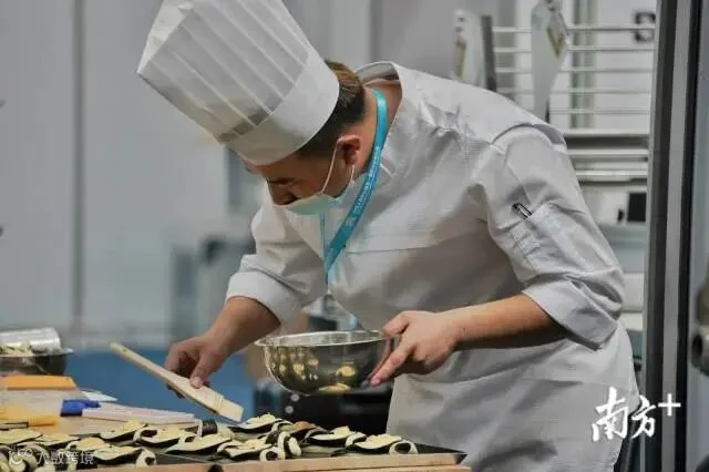大赛烘焙项目中,选手正在面团上涂抹蛋液。南方日报记者 石磊 肖雄 见习记者 许舒智 金镝 摄