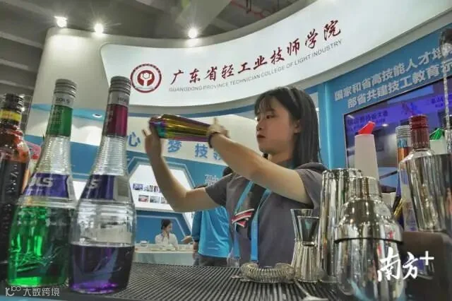 大赛展示交流区内,来自广东的技能人才正在表演调酒制作。南方日报记者 石磊 肖雄 见习记者 许舒智 金镝 摄