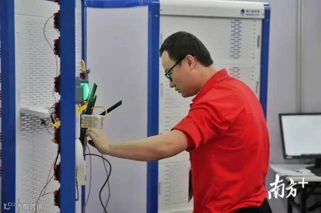 物联网技术项目中,比赛接近尾声,选手正最后检查网络连接。南方日报记者 石磊 肖雄 见习记者 许舒智 金镝 摄
