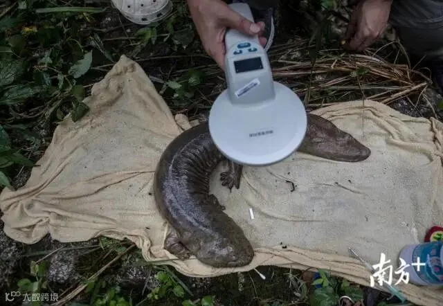 每条娃娃鱼都被植入了“身份证”芯片,可以详细了解它们的所属品系、放流时的体长体重等信息。