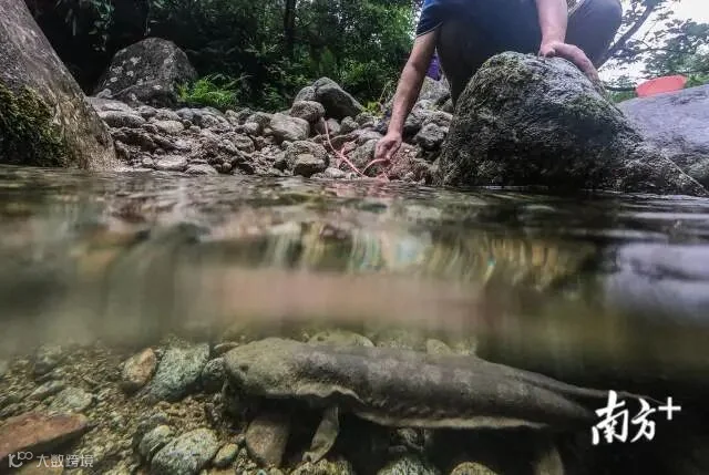 娃娃鱼只会在夜间出没,且溪涧乱石密布。打小时候见到“黑色木头”后20多年时间,唐慧城再也没有亲眼见到野生的娃娃鱼。