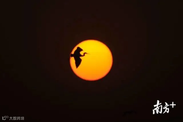 傍晚,落日余晖下的鹭园上空上演了千鸟回巢的壮观画面。