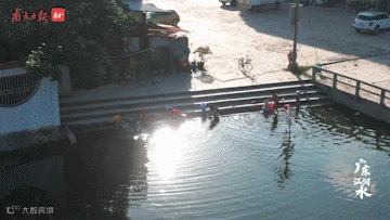 清晨,在潮阳区铜盂镇的练江支流,许多潮汕妇女在河边洗衣物。中午,潮南区峡山街道的练江干流,青砖黄瓦的潮汕老厝旁,自劳地艺术学堂的孩子们在纸上画出心目中的母亲河。傍晚,水质好转的老练江,许多人在平缓温润的河水里畅泳。