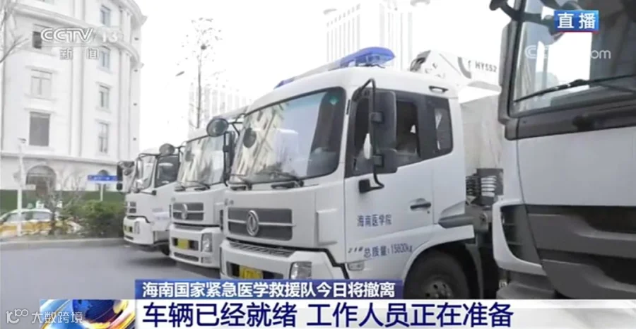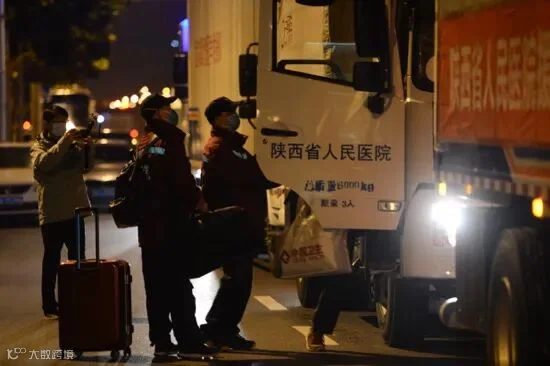 陕西国家紧急医学救援队是今早首支撤离的医疗队。今早6:00,陕西国家紧急医学救援队在武汉青山区武钢体育中心对面天际丽豪酒店门口出发返回,车辆9辆,队员43人。