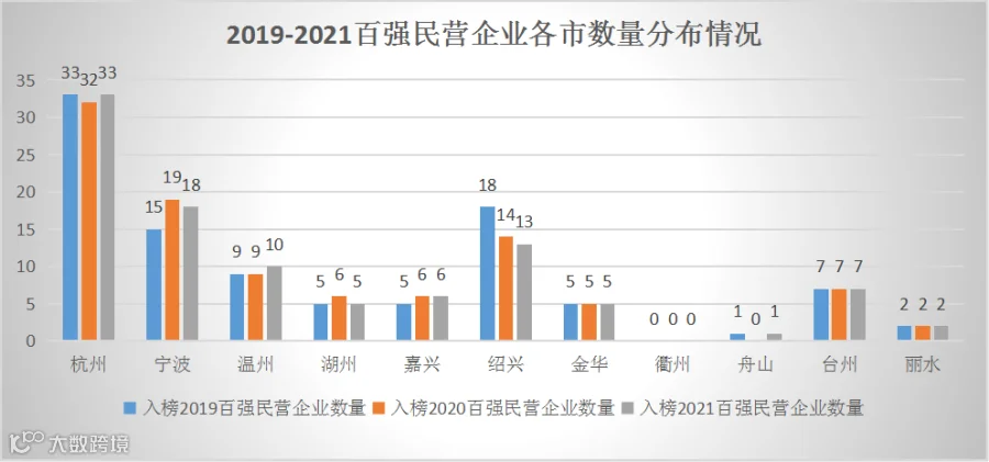 百强企业主要集中在杭州、宁波、绍兴等大湾区