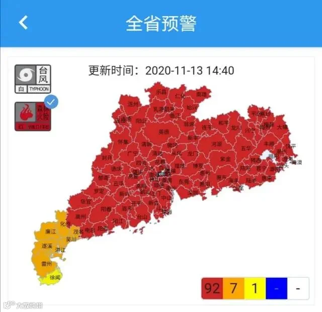 有些震惊,打开全省预警信号,忽然就发现广东继续“红”了。