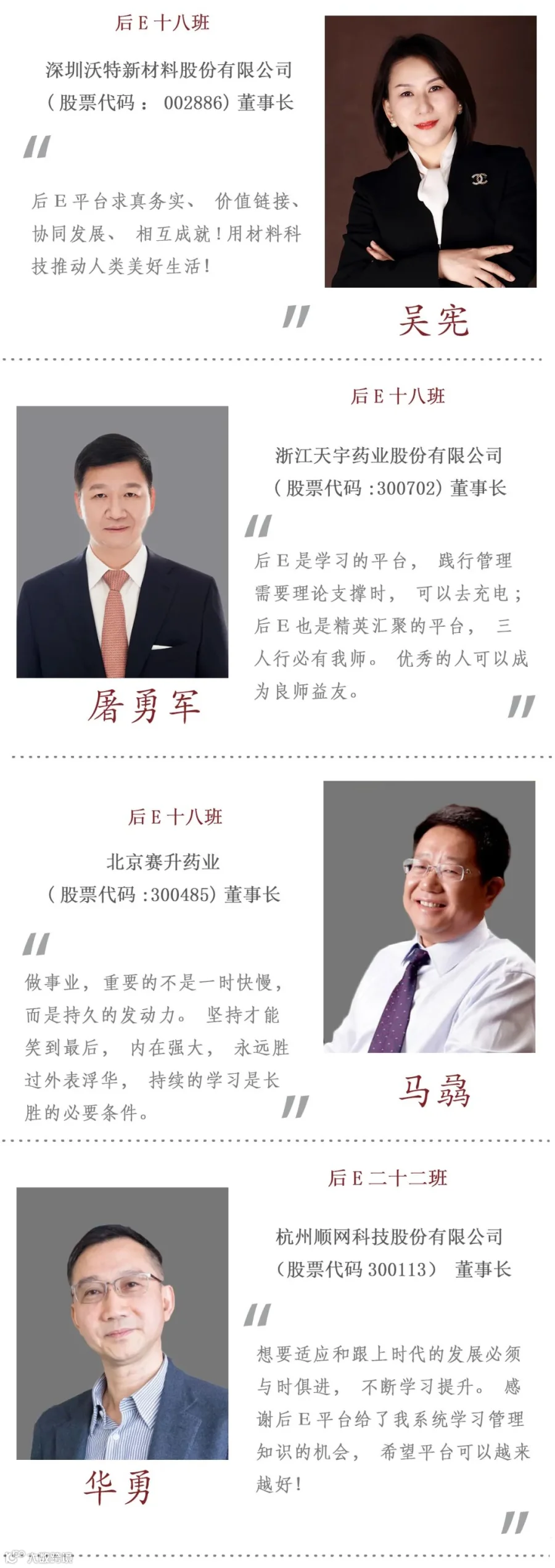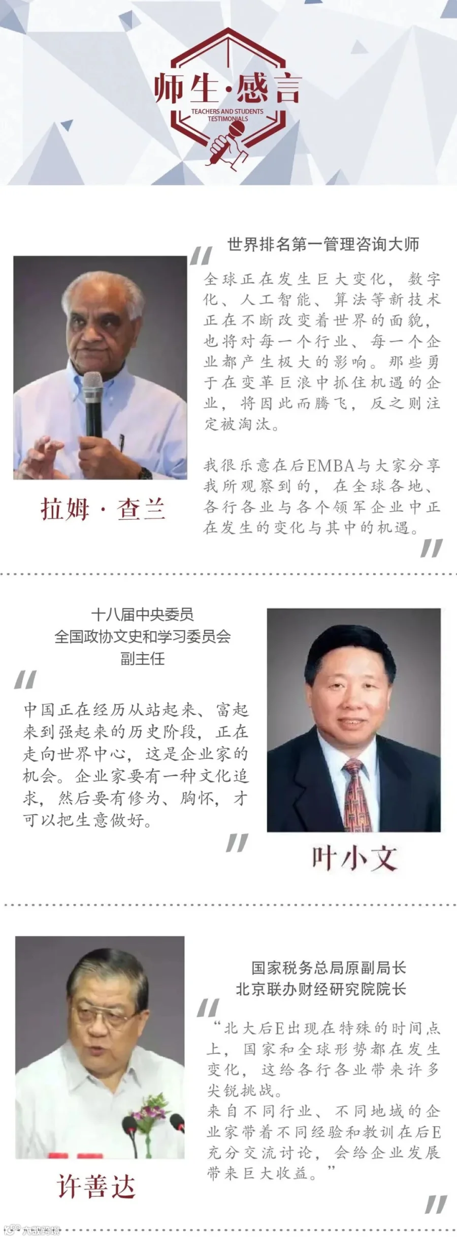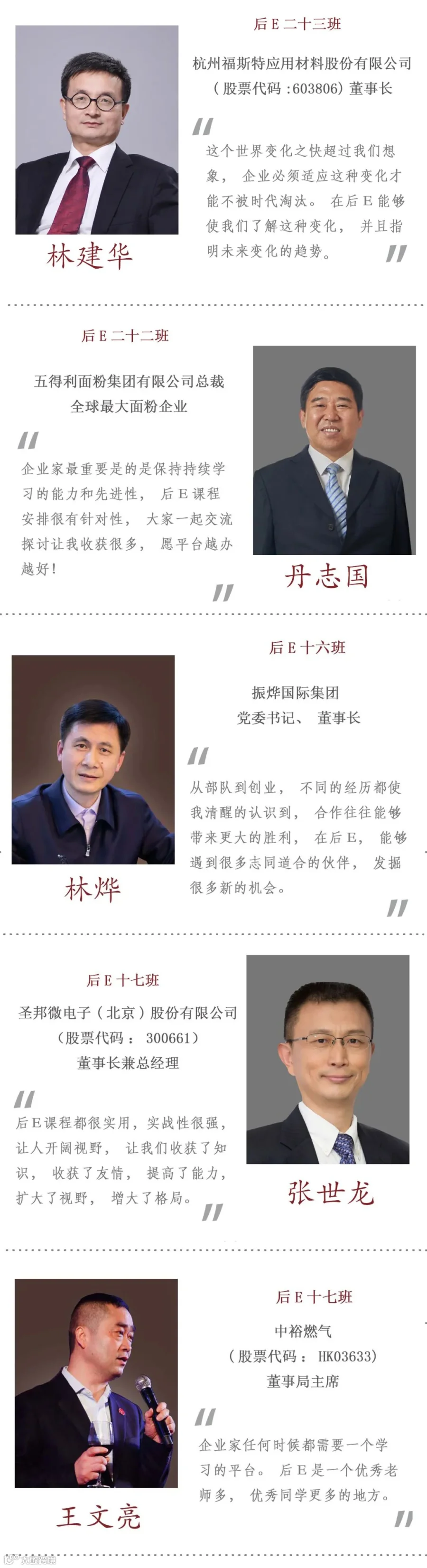 后EMBA是MBA、EMBA之后的再延续、再提升、再超越!持续打造中国最高端的知识学习与资源整合平台,从而引领社会、引领时代、引领中国未来。自2011年开办以来,已先后开班二十五期,3000余位杰出企业家入班学习。