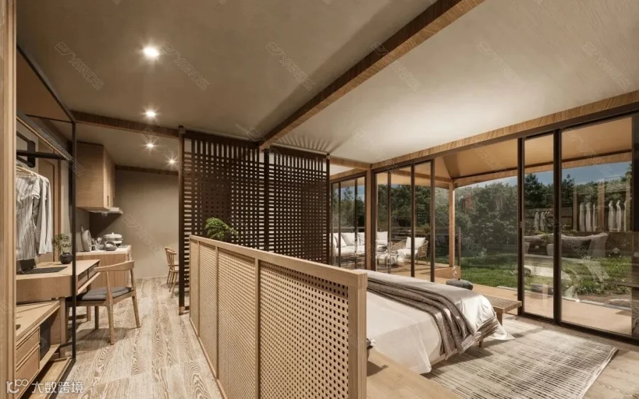更新增了屋内装修与家具配置等方面的个性化选择,从极具东南亚风情吊顶,到现代极简风的室内陈设,提供规划设计到项目落地全案定制服务,带来一场奢华体验与自然完美融合的旅居革命。