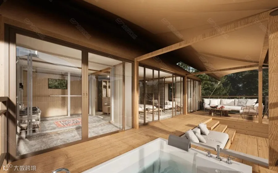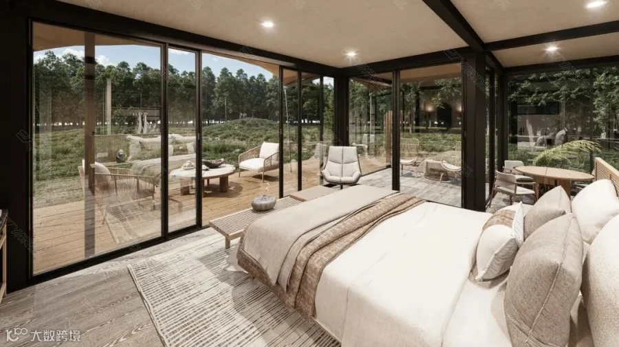 五星级标准打造套房设计,室内采用奢华内饰搭配270°全景窗,外帐延展超大空间露台可配置无边泳池、沙发躺椅、下沉式庭院等丰富户外娱乐功能设施,完美契合高端客群的多元化需求。