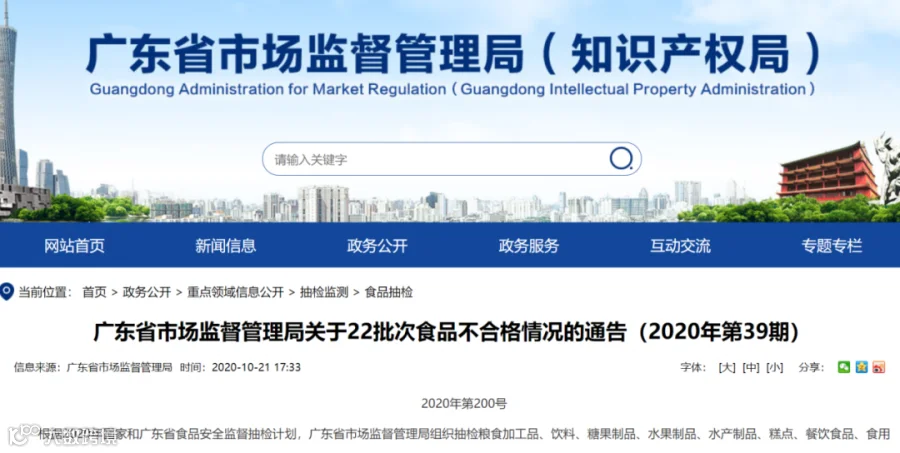 根据2020年国家和广东省食品安全监督抽检计划,广东省市场监督管理局组织抽检粮食加工品、饮料、糖果制品、水果制品、水产制品、糕点、餐饮食品、食用农产品和食用油、油脂及其制品等9类食品1052批次样品。根据食品安全国家标准检验和判定,其中抽样检验项目合格样品1030批次、不合格样品22批次,检出微生物污染、其他污染物、重金属污染及食品添加剂超范围超限量使用问题。