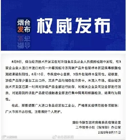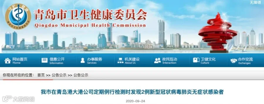 9月24日晚,山东省青岛市卫生健康委员会官网发布公告称:发现2名装卸工人感染新型冠状病毒,属无症状感染者。公告内容如下:
