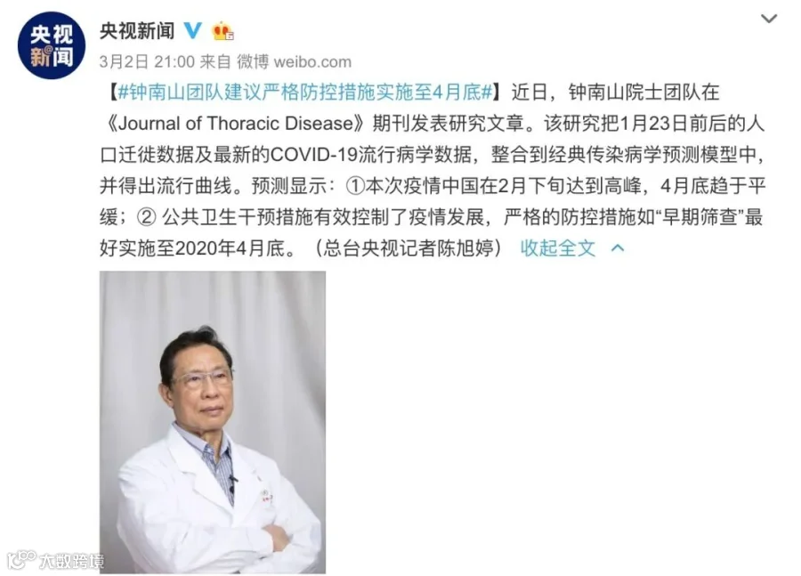 钟南山团队:建议“早期筛查”等严控措施实施至4月底