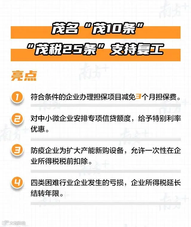 “茂10条”“茂税25条”支持复工