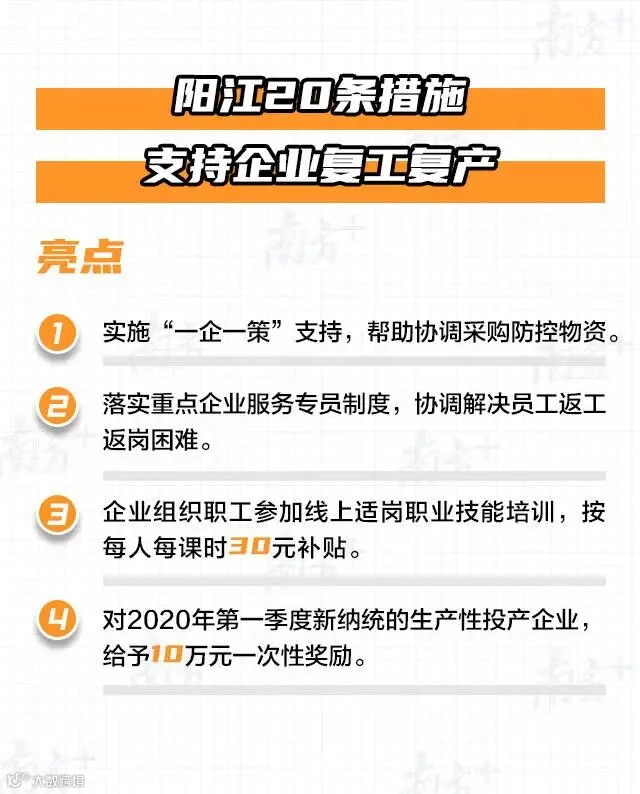 阳江20条措施支持企业复工复产