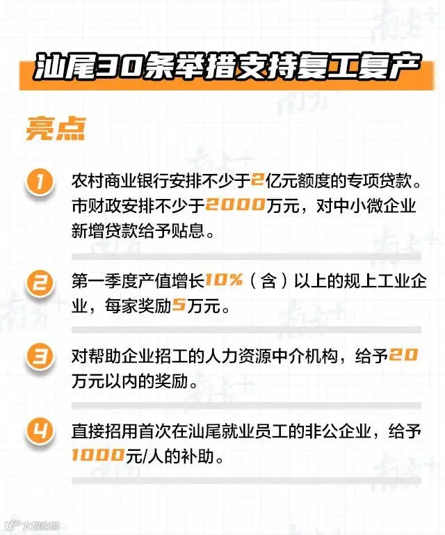 汕尾30条举措支持复工复产