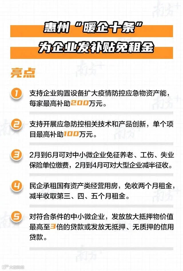 惠州“暖企十条”为企业发补贴免租金