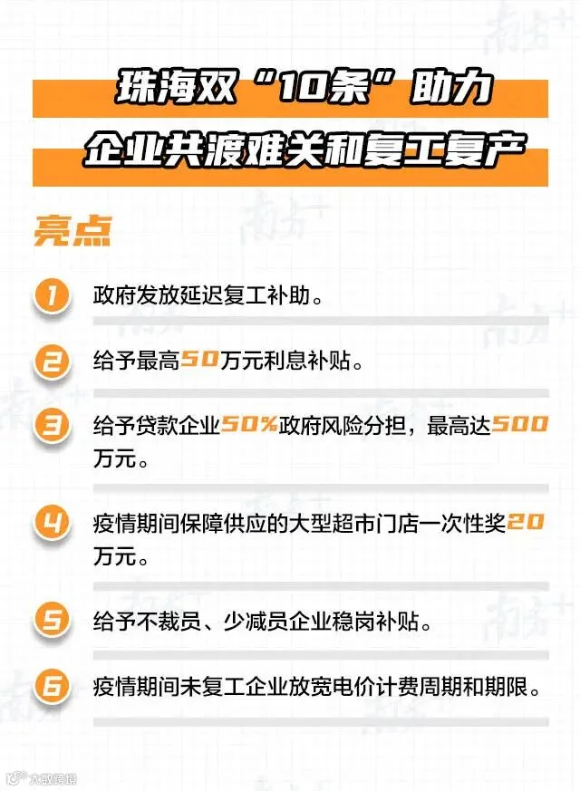 珠海双“10条”助力企业共渡难关和复工复产