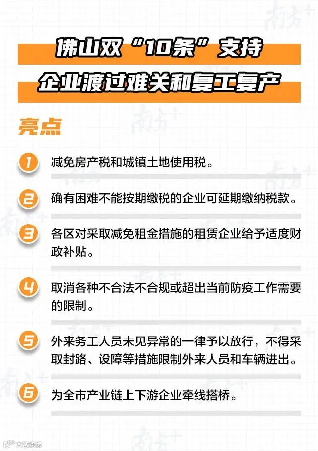 佛山双“10条”支持企业渡过难关和复工复产